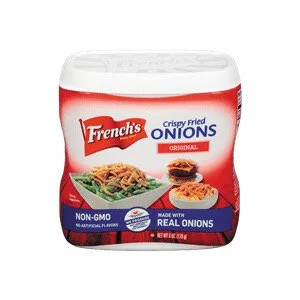 Crispy Fried Onions make a delectable topping for this salad. You can add as many of these as you like, and make sure and get them toasty in the oven right before you sprinkle them over your creation.