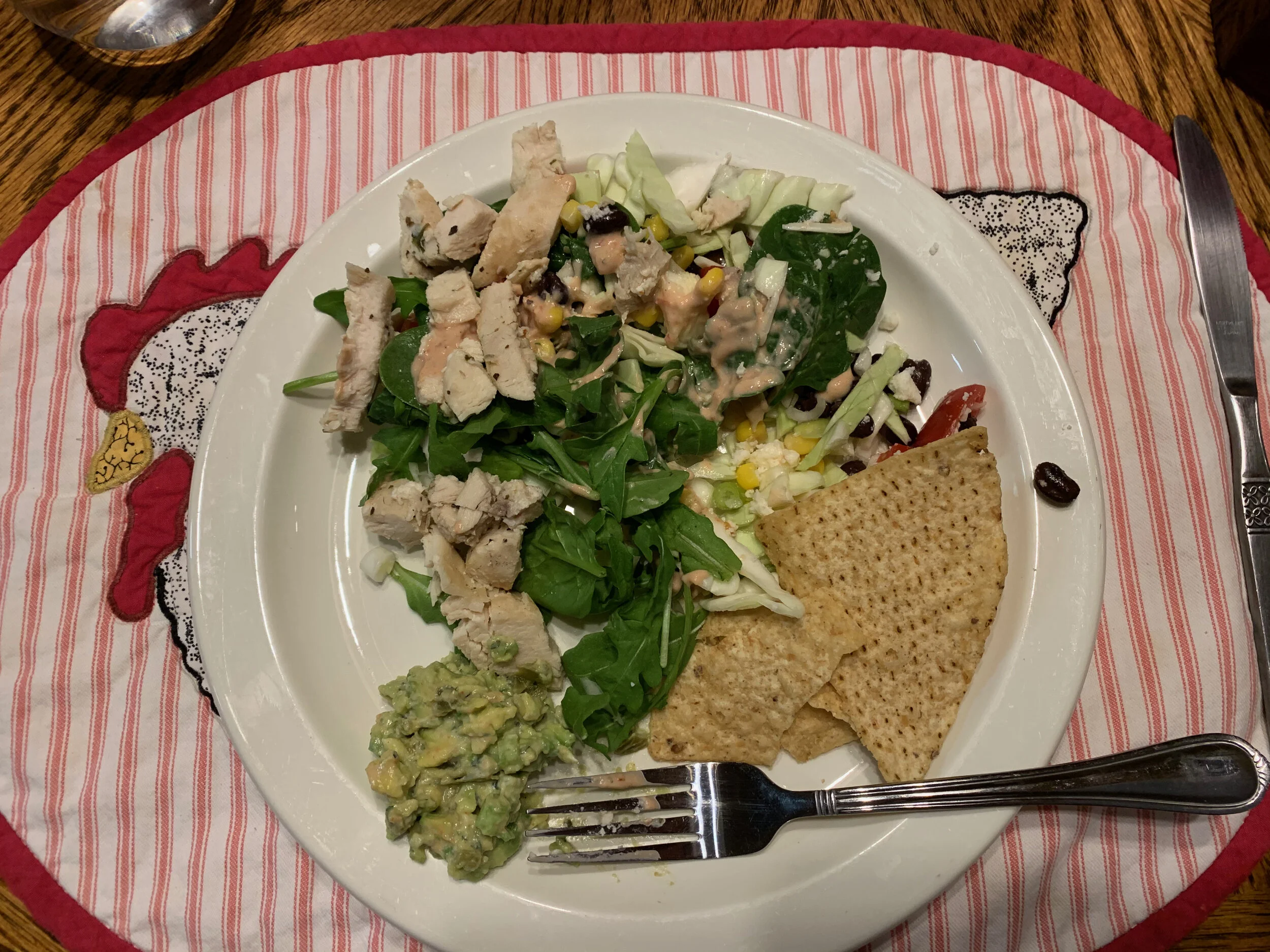 Easy Salad for a Weeknight Supper- Salad with BBQ/Ranch Dressing and Crispy Onions