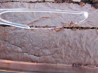 I am going to tell you a secret. A secret about a cooking tool that is so, so easy to use, and you will thank me. You know when you cut brownies either warmed or cooled and they wad up on the end of your knife, and there are brownie guts everywhere? Well, I am going to show you a way to do that without all the mess. Now some of you will be sad because you like that brownie goo. You have convinced yourself that there are no calories in that little bit of brownie gradu (pronounced: "grah doo").This is Brownie Gradu which is usually what you get when you cut your brownies.
