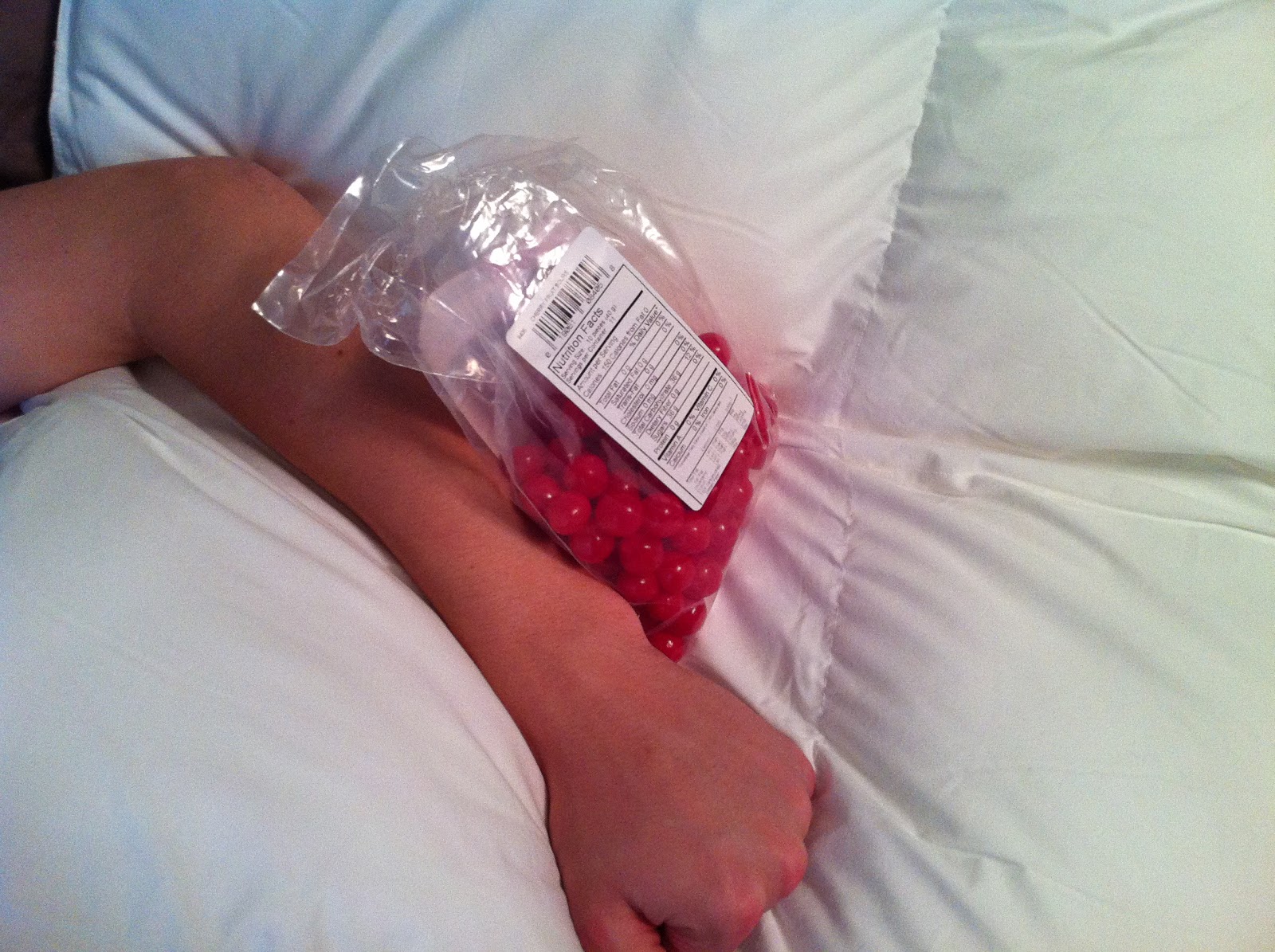 He loved his bed which was stuffed with pillows and had a big comfy, cozy comforter on it. AHHH...